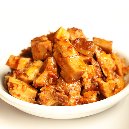 选用内蒙古草原牛板筋制作而成,更加劲道爽滑有嚼劲。切块成型的工艺入口更方便,让每一块都香辣入味唇齿留香。