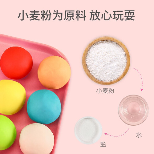 这款八色的彩泥玩具,拥有丰富的配件,多种玩法供我们随心选择。选用小麦粉、水、盐制作,柔软好捏,宝宝可放心玩耍。