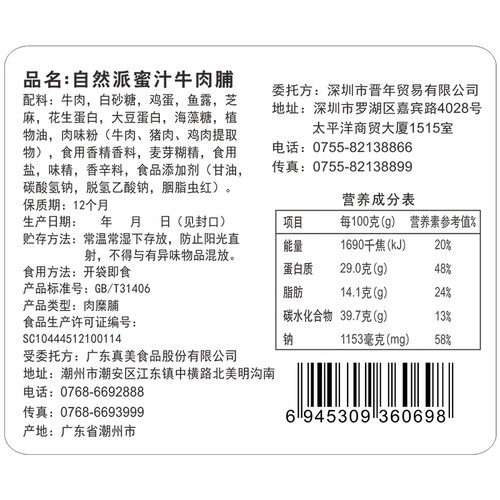 自然派香甜蜜汁牛肉脯