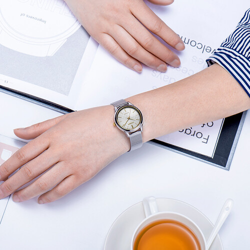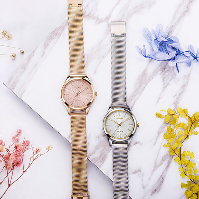 合成矿物质的表镜融入了菱形元素,具有波光动感,风格优雅简约;不锈钢制成的表带耐磨抗刮花,而且触肤凉爽舒适。