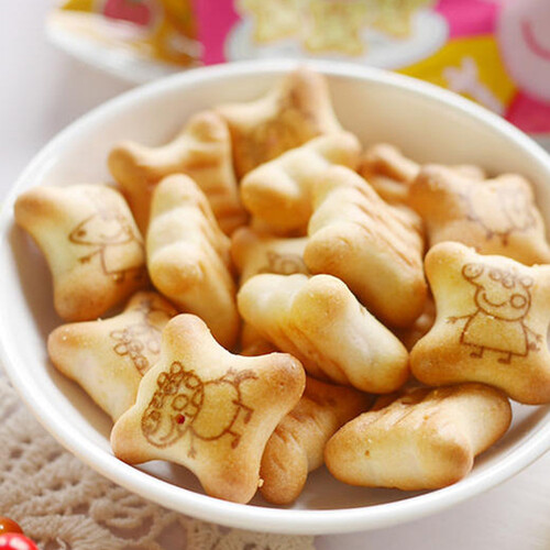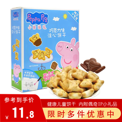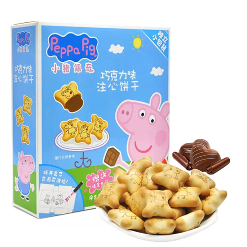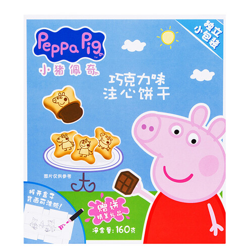 可爱卡通小猪佩奇造型,立马俘获孩子们的心,饼干独立分开小包装,干净卫生,不用担心一次打开吃不掉会变潮。