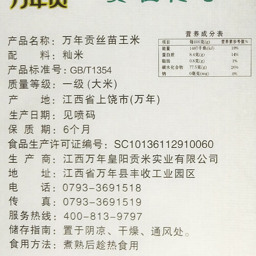 万年贡 丝苗王大米