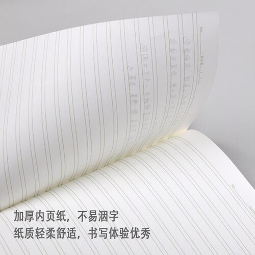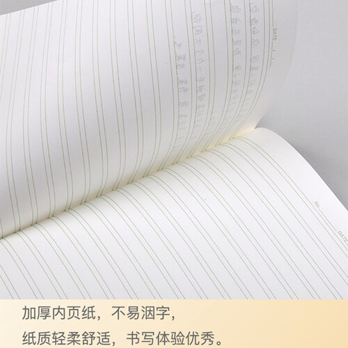 纸张厚度适中,不晕染不浸墨,正反两面均可书写,双倍使用率。封面采用纸杯纸制作,耐磨耐用,有效保护内页纸,不易损伤。