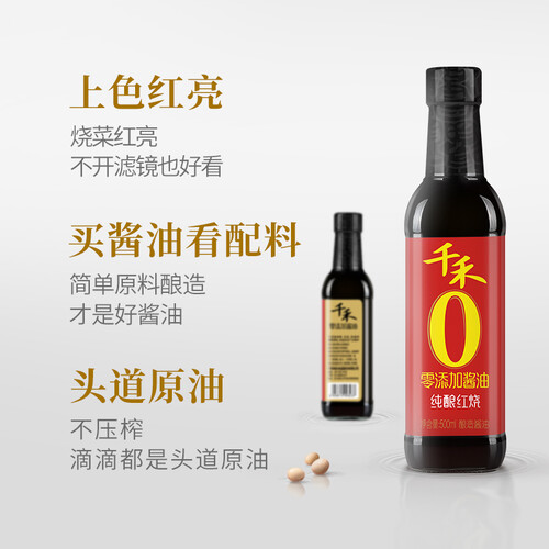 外观设计简约美观,辨识度高富有特点。酱油不添加味精、色素和防腐剂,色泽红亮,配菜滋味更鲜美。