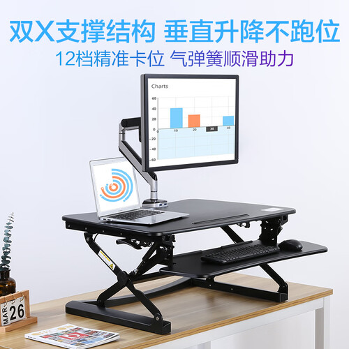 站立式家用电脑桌,站立办公更健康,带来十分舒适的办公体验。甄选高硬度冷轧钢板材质,坚固强承重,经久耐用。
