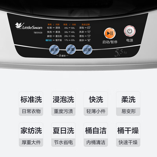 橡胶安全把手,结实耐用,绝缘阻燃内胆插头,防漏电防雷击,品质电机,实现高效快速洗涤,省时省水省电。