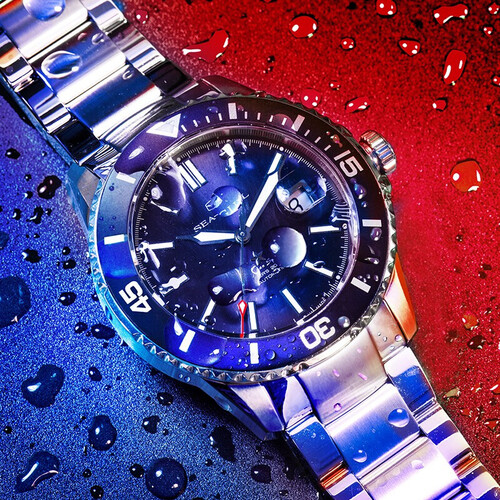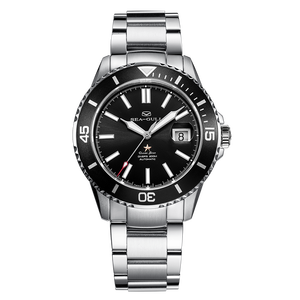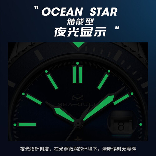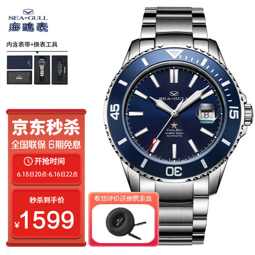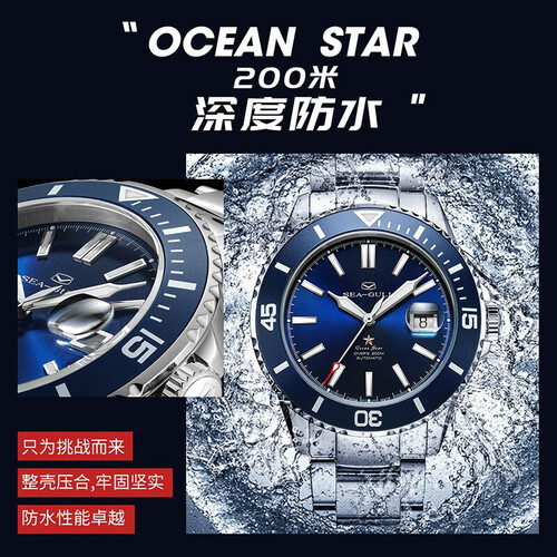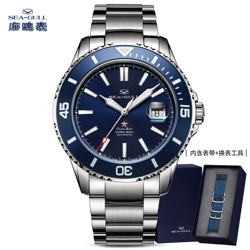 手表搭载自动机械机芯,具有走时准确、误差较小的优点。旋入式螺纹表冠采用双重密封设计,防水性能更出众。