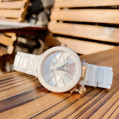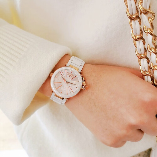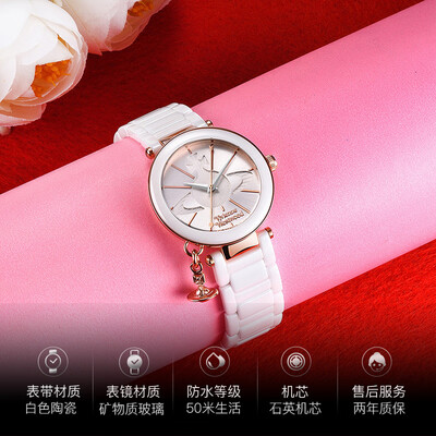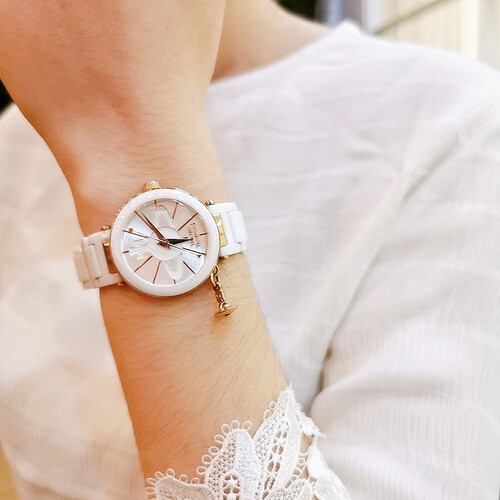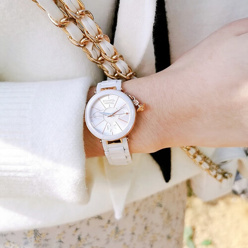 白色基调的陶瓷手表,金色线条勾勒表圈,与土星标识相呼应,彰显清新精致风格。30米生活防水,无惧雨淋,日常洗手不用摘。