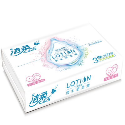纸巾添加乳霜,柔润加倍,柔滑亲肤,采用立体压花工艺,3层设计更厚实耐用,无纸屑脱落,特别添加保湿成分,保持肌肤水润亮泽。