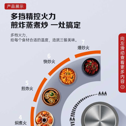 这款燃气灶采用小巧机身设计,能够充分降低燃气灶对于厨房空间的要求,各种大小的厨房都能够自如使用,带来更多便利。