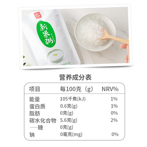 由新米与粳米熬成的即食米粥,质地浓稠,口感细腻,更易人体消化及吸收,是一款老少皆宜的方便食品。