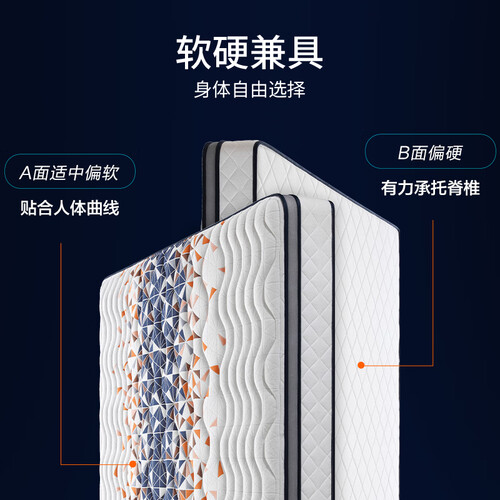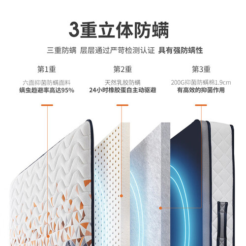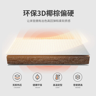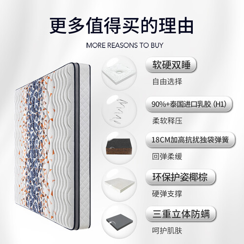 泰国天然的乳胶材质,经过高温热压的偏硬椰棕层,硬中带软,承托力强。面料加持抗菌防螨双重科技,亲肤性佳健康环保,让睡眠更舒心。