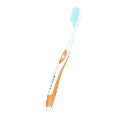 高分子材质刷毛,比一般刷丝更具摩擦力,清洁效果更强,一体成型的设计也让牙刷更加亮丽和轻巧易握。
