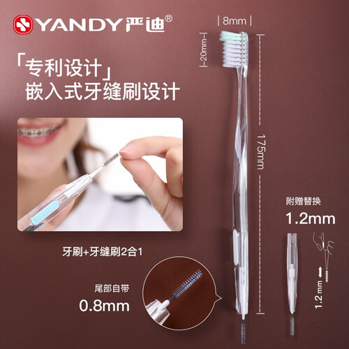 这款牙刷的头部有点小凸,能轻松刷到牙齿后端和难清洁的地方,它的刷柄处还有牙缝刷,牙齿的洁净度更高效。