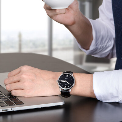 表壳采用不锈钢材质制作,质地坚硬不易变形,经久耐用。搭载酷黑表盘,时尚精美,优雅大方。