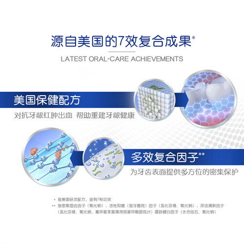 采用全优7效配方,能减少牙结石形成、洁白牙齿等,实力助社交达人摆脱口腔亚健康烦恼;同时薄荷香型,能让口气更清新怡人。