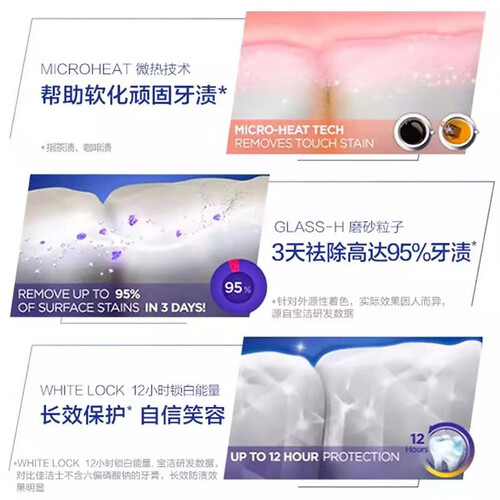 采用进口配方,拥有热感去渍科技,能够软化牙齿表面的牙渍,还能12小时长时锁白,让你放心享受咖啡,助精致女神笑容更自信。