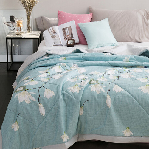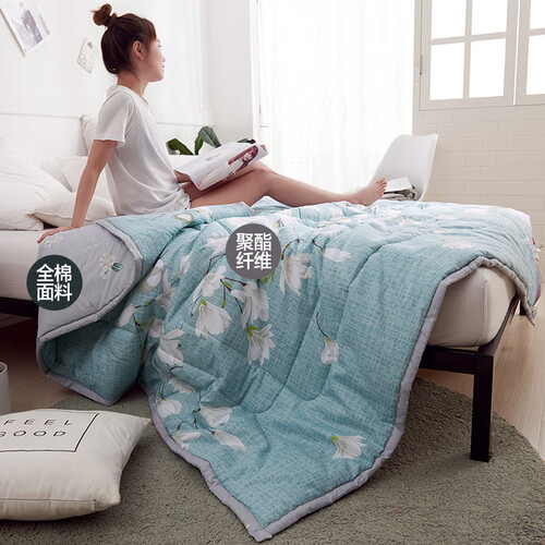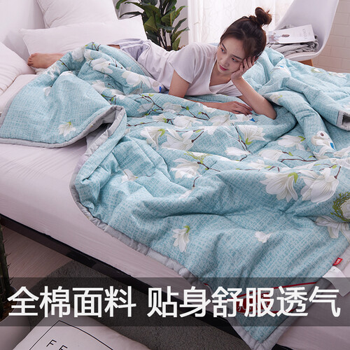 采用纯棉面料制作,透气性良好,赶走夏日睡眠闷热感。且填充纤维采用十道梳理工艺,展现被子的蓬松柔软,打造亲肤透气睡感。