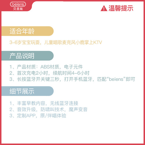 产品采用双电容的方式,能够真实还原宝宝音色,可连接蓝牙,纵享海量音源。