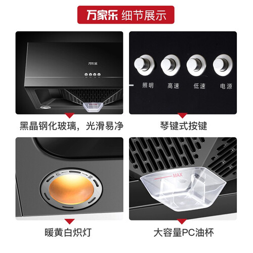 万和 黑晶钢化玻璃面板油烟机