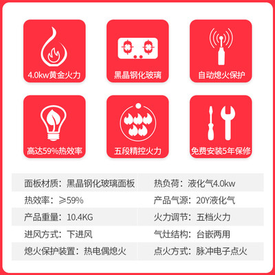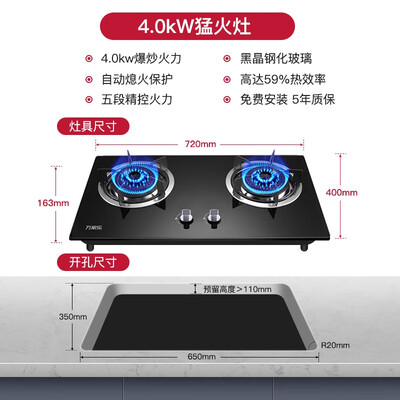 优选720mm钢化玻璃面板,安全耐用,日常也很好清洁打理。搭配上4.0KW高效猛火,热电偶熄火保护,烹饪安心无忧。
