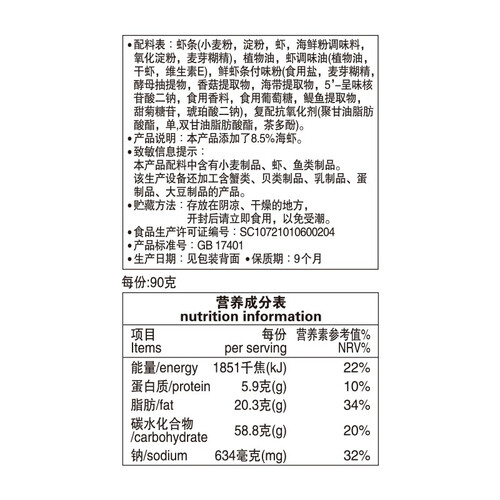 采用面粉以及虾粉混合,保存了美味鲜虾的味道,再加上松脆的口感,一根一根拿着吃很过瘾,追剧时来一包超惬意。