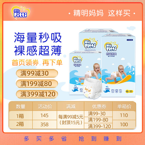 海量魔力吸水球,吸收量大,快速吸收尿液,结合凹凸排湿通道,迅速排掉湿气,保持宝宝屁屁干爽不潮湿,柔软透气,穿脱自如。