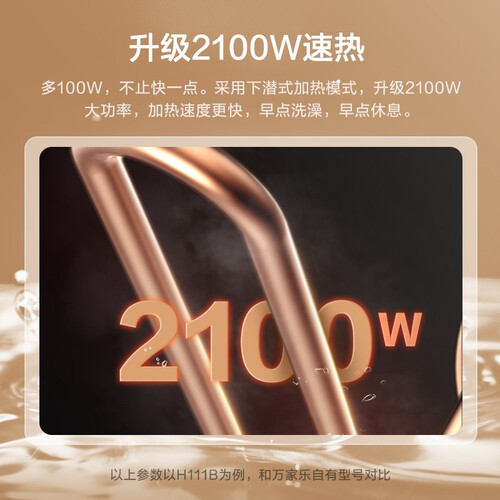 2100W大功率,热水随传随到。出水口隔热环设计,防烫耐高温。加厚致密保温层,保温性能好,长效锁温更省电。