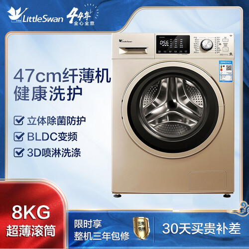 采用8公斤大容量,大件衣物、床单、窗帘也能一次清洗完成,无需分批清洗,省时省力,满足全家人的洗涤需求。