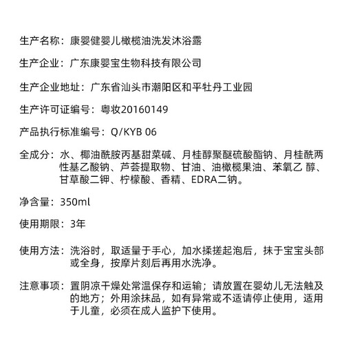 这款康婴健橄榄油婴儿洗发水,不添加皂基等物质,洁净无残留。植物精华,修护肌肤,滋润保湿。