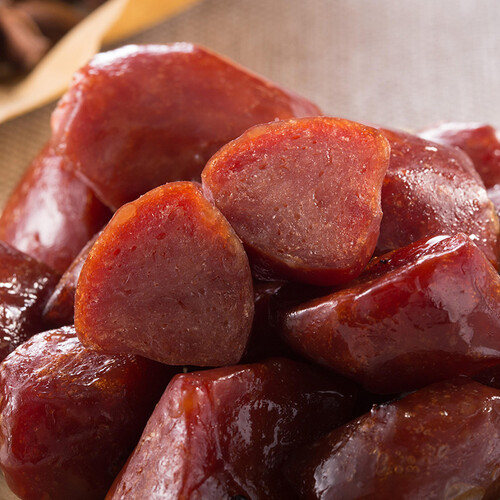 色泽如红枣般红润诱人,每一口都能尝到弹脆肉质,小袋包装吃起来方便。优选农家猪腿肉为原料,肉质好,无添加。