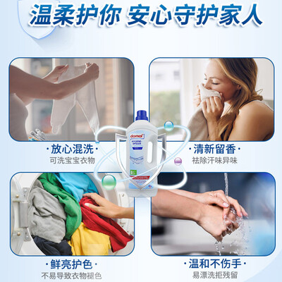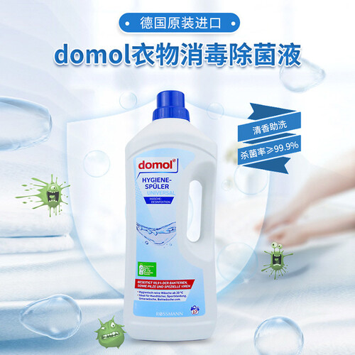 Domol婴儿除菌洗衣液来自德国配方,有效减少衣物上的附着物。同时敏感性设计,呵护宝宝细嫩肌肤,也适用成人的贴身衣物。