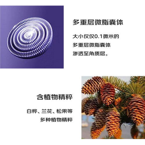 多重层微脂囊体,小分子更易于被就所吸收,使用感更好。持续润泽滋养,有助于调理脆弱肌肤状态,养肤更安心。