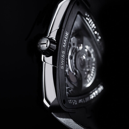 采用三角形的造型设计,更具有个性感,搭载弧形镜面,观看时间更为清晰。背透表盘打造,更显精湛工艺。