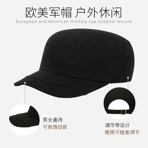 选用帆布透气面料,轻盈质感减少闷热感。多层拼接设计,令帽子挺括有型,具有十足的美感。复古的调节扣设计,方便穿脱。