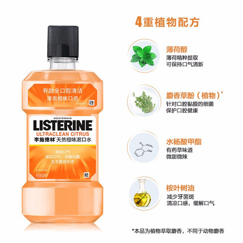 香甜橙味漱口水,温和清洁口腔,有效解决口腔异味干扰问题。泰国原装进口,融入四种天然植物精油配方,有效祛除口腔粘膜细菌。