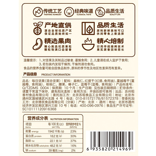 果仁和干果混装搭配,丰富的营养结合,食用可以更好滋补能量,有益健康。25个独立小包装,即用即开,食用方便保持新鲜。