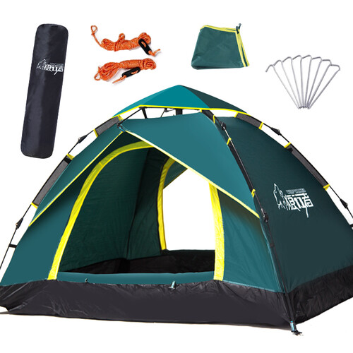 大空间,可容纳3到4人,适合跟好朋友一起露营使用。搭载弹簧系统,一提一压,快速收纳安装。