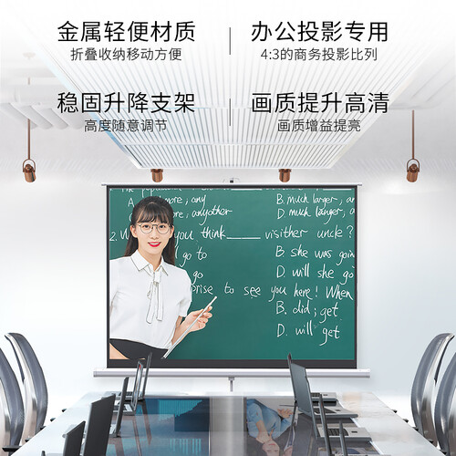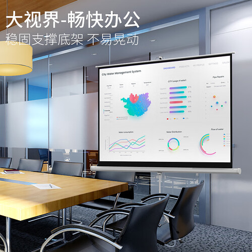 一款100英寸的大尺寸幕布,采用白塑材质,拥有平整的幕面,使它成像清晰自然,支持3D高清资源,带来更生动的观看体验。
