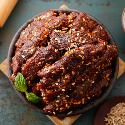 精选自然放养的新鲜牛肉,肉质紧实,口感细腻肉香浓厚,味美多汁,且口味咸甜适中。采用现代化烘烤工艺,营养丰富不流失。