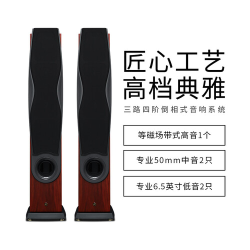 外观采用木质箱体配铝装饰圈,显高挡优雅令居家环境更典雅迷人。箱体内部采用矩阵式加强结构,降低箱体震动,让声音更稳定。