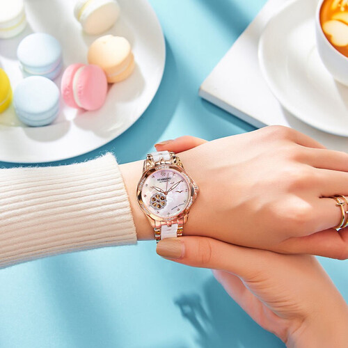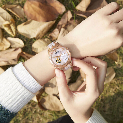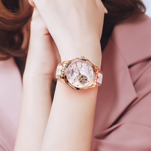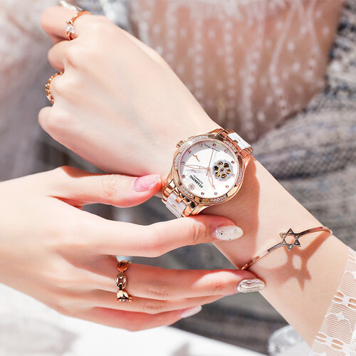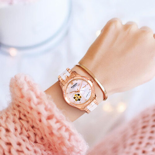 双按蝴蝶扣,美观便利,弧形设计,能够映衬出知性优雅的气质;优质精钢,线条优雅流畅,让手表多了一丝精致感。