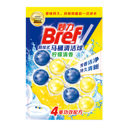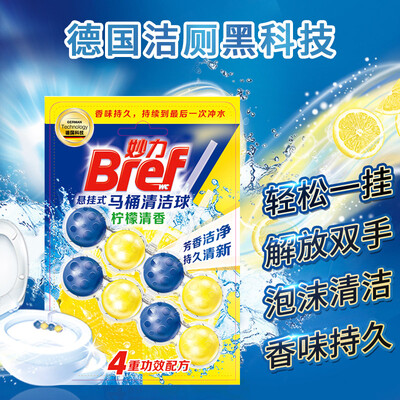 柠檬清香型的魔力球,只需简单将支架拉开,再将其挂放在马桶内侧边缘即可,污渍清洁轻松方便,免去手动刷洗烦恼。