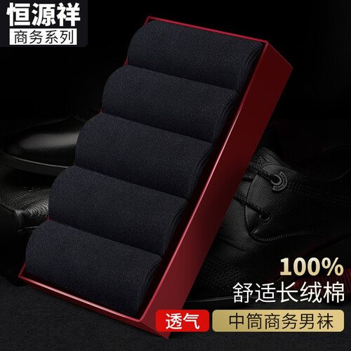 精选全棉材质打造而成,吸湿又透气,穿着不易臭脚。五双袜子均采用全黑色,适合于经常穿西装、皮鞋的商务人士,低调又绅士。