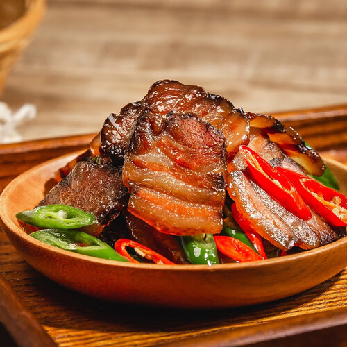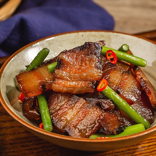 选用优质五花肉制作而成的腊肉,肥瘦相间的肉质,肥而不腻,入口有嚼劲,好吃到停不下来。