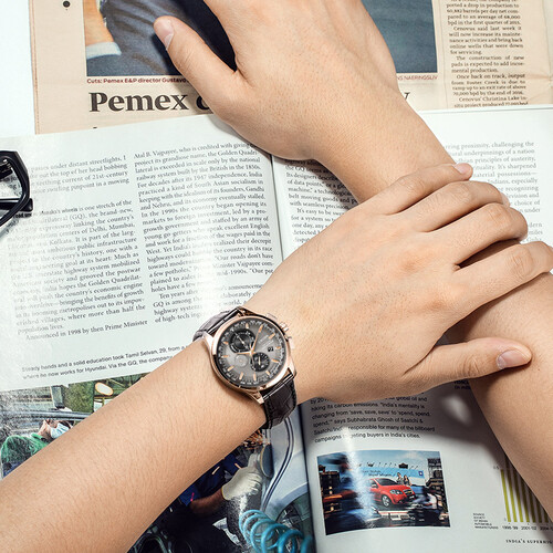 拥有100米深度防水的能力,无论是哪种环境都可以轻松驾驭。配备三眼计时表盘,既可以是装饰,又便于清晰读时。