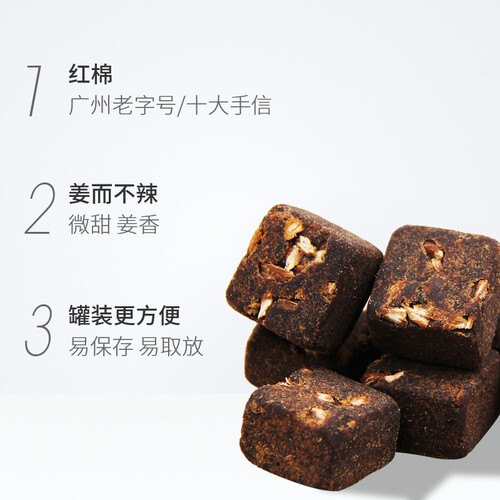 添加生姜入料,糖块中带有浓厚的姜香味,不辣口更暖胃。不添加赤砂糖与白糖勾兑,味道甜香诱人,入口令人心生满足。