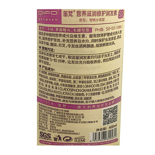 添加高级香氛,采用香氛发疗,持久留香,尽显迷人气质;保湿滋润,给你的发丝注入营养,拯救干枯发,令发丝重现水润。