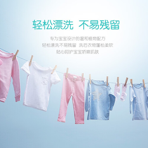 不含磷,不含荧光增白剂,不含酒精,不含动物油脂,妈妈安心更无忧。有效去除奶渍,尿渍等污渍,衣物干净柔顺如新。