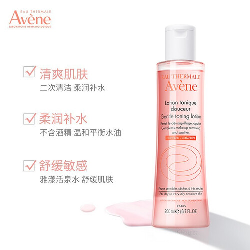温和亲肤不刺激的爽肤水,富含雅漾泉水,有效清洁肌肤,平衡水油,帮助肌肤补充水分,舒缓紧绷刺激感,让肌肤健康更弹嫩。